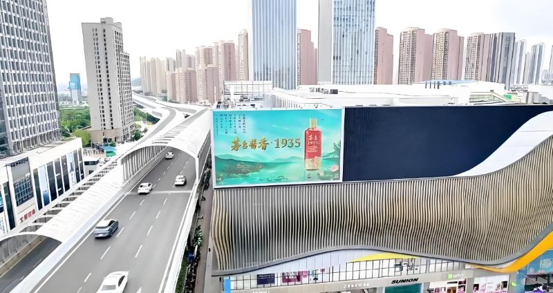 大屏位于龙阳大道与二环线高架交汇处,可视距离达 400 米,覆盖主干道车流及商场人流。车流中车辆停滞时间长,人流以家庭消费、年轻群体为主,与快消、汽车、亲子等品类广告主需求高度契合例如,元旦期间摩尔城单日最高客流 8.2 万人次,广告曝光量可同步激增
