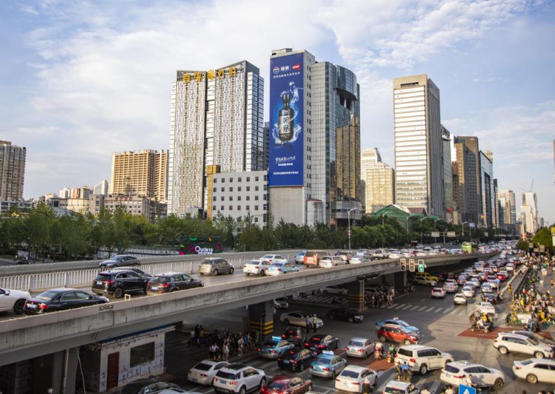 距地铁 1 号线与 2 号线换乘站五一广场站仅 280 米,日均地铁客流超 50 万人次,出站即见的地理位置使广告触达率接近 100%同时,大屏位于五一大道与黄兴路主干道交汇处,日均车流超 50 万辆,红绿灯等候场景下,单条广告平均触达时长超 30 秒,远超普通户外媒体的一闪而过