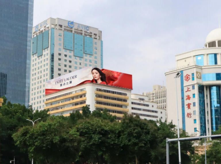 位于福田区华富路 1004 号,是该区域的标志性建筑之一其楼顶大牌作为重要的户外广告载体,具有较高的区域影响力