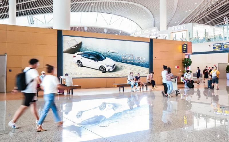 在机场内商业区是旅客停留时间最长的区域之一,通过这个机场灯箱,品牌可以向目标受众传递高端、国际化、高品质的形象,从而在竞争中占据优势是一个集高曝光、精准触达、高回报于一体的优质投资选择,让旅客在行走间不得不抬头关注,形成强制曝光,确保广告效果最大化