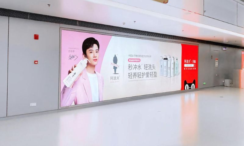 作为宁波栎社国际机场的重要广告位,直接关联城市门户形象,提升品牌的城市影响力通廊墙面,高度适配旅客站立平视范围,无柱体或其他设施遮挡,可视距离达30 米作为到达通廊唯一的大型墙体灯箱媒体,旅客通行时无法回避,广告有效到达率达98% 以上